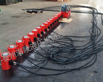 我公司設(shè)計制造的(PLC)同步千斤頂廣泛適用于大型建筑工程設(shè)備,構(gòu)件的同步起頂、調(diào)整及鐵路、公路、橋梁工程的架設(shè)。它可根據(jù)現(xiàn)場的實際情況選配不同規(guī)格、型號、數(shù)量的超薄型JRSM系列、薄型JRCS系列、大噸位DYG系列10T、20T、30T、50T、100T、150T、200T、320T、500T千斤頂。以及配備1.1KW、2.2KW、3KW、4KW、5.5KW、7.5KW、13KW等不同規(guī)格的泵站,同時配備不同長度的高壓油管和合適的分配閥,采用一泵拖多頂?shù)姆椒ㄒ詽M足適應施工現(xiàn)場的作業(yè)要求。